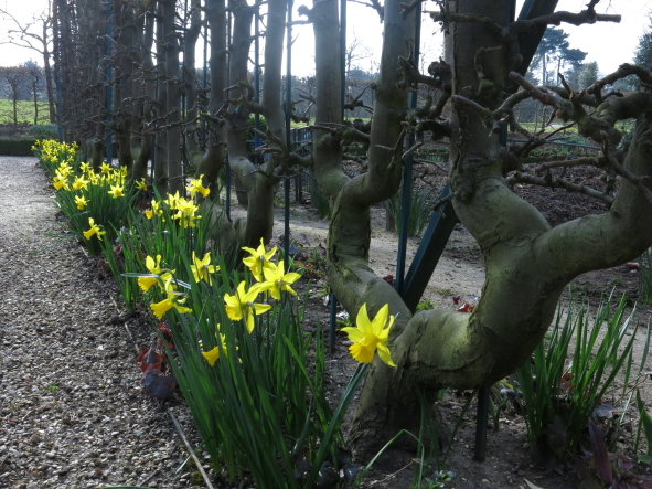 In March and April the Bagatelle is a sea of daffodils—or are they narcissi, the perfect flower to represent Charles X and his contemporary knockoffs? Crocuses carpet the rolling lawns which are also dotted with pines and yews and flowering shrubs of all kinds. Flocks of geese, and those pesky peacocks, wing past. Buds burst and leaves unfurl in a gentle yellow rain that leaves allergy suffers breathless.