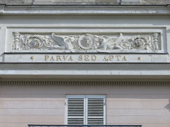 The other saying associated with Bagatelle is “parva sed apta” — small is beautiful. It’s emblozoned on the façade in gilt letters. But this saying was coined probably 2,500 years ago in Athens or Rome. It is apt to this day: the chateau is pocketsize, symmetrical, pink-stucco perfection, and the garden itself, though not exactly small, seems intimate and compact compared to the sprawling Bois de Boulogne.