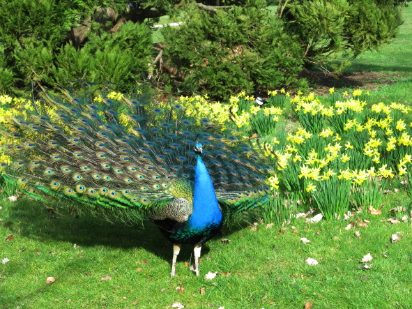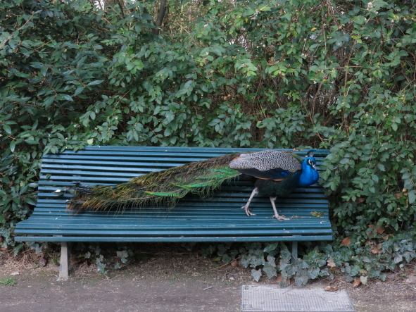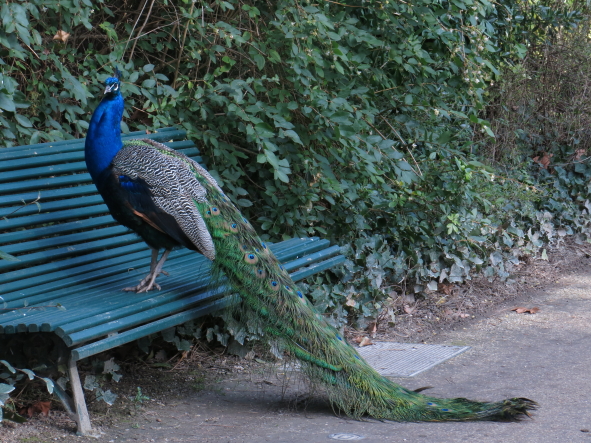 On a weekday morning in early spring there were more peacocks—the feathered variety—than those of the human kind, meaning typical, self-adoring Parisians, descendants or spiritual heirs if you prefer of bad Charles X or the rebellious Romantics (Victor Hugo, George Sand et al). All these vintage Frenchmen and women were celebrated for their narcissism. Today the peacock-birds strut and fan their eye-dotted tales while the contemporary human peacocks saunter along the looping lanes avoiding the bird’s beaks. Or do they also strutt?