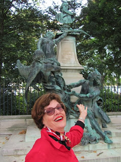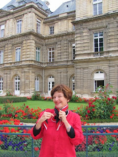 Fun in the sun (and rain) department: spend a spell with yours truly and author and fellow Paris card — Harriet is known for her contagious laughter and irreverent sense of humor — Harriet Welty Rochefort tooling around the Luxembourg Garden and surrounding streets. We share insights, jokes, tips on Franco-American cultural differences, plus places to have coffee, eat, drink, be merry, read poetry off walls (not off the wall poetry, editor’s note)… All this for free, naturally, on the indispensable Paris website Bonjour Paris… Here’s the lede and a link, plus some photos I snapped of Harriet just for fun…