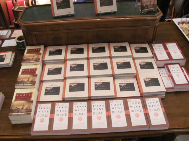 The display at the historic Rizzoli bookstore included Quiet Corners of Rome, Paris, Paris, and our Terroir Guides to Rome, Burgundy, and The Italian Riviera.
